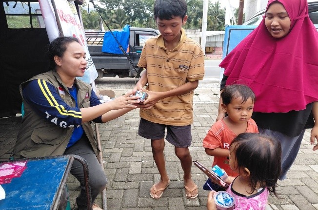 Kegiatan hari pertama (16/2) bertempat di Desa Padasari, Tegal, Jawa Tengah, telah diberikan layanan kesehatan gratis kepada masyarakat dan dukungan psikososial kepada anak-anak sebagai trauma healing dengan mengajak bermain, membagikan boneka dan jam tangan, buku cerita, puzzle serta mainan anak.