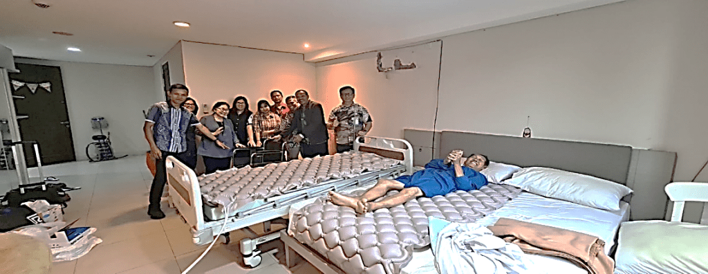 BOGOR – Tim Pelmas BPP GBI yang diwakili oleh Pdt. Didimus Fingkreuw, dr. Sumayadi, Yusak Adi, belum lama ini melakukan kunjungan kasih sekaligus memberikan bantuan berupa 1 unit Ranjang Pasien, 1 unit Kursi Roda serta 1 unit Kasur Decubitus kepada dr. Heru Mustika (63) suami dari dr. Luisa A. Langi (salah satu relawan dokter & anggota PDGBI) yang terbaring sakit. Bantuan diberikan secara langsung di Panti Wreda Graha Bina Asuh, Kemang, Bogor pada Senin (3/11) lalu.