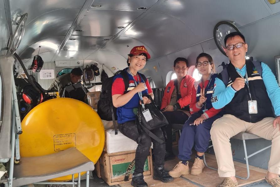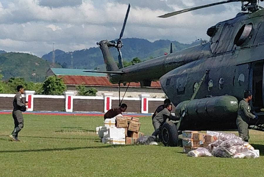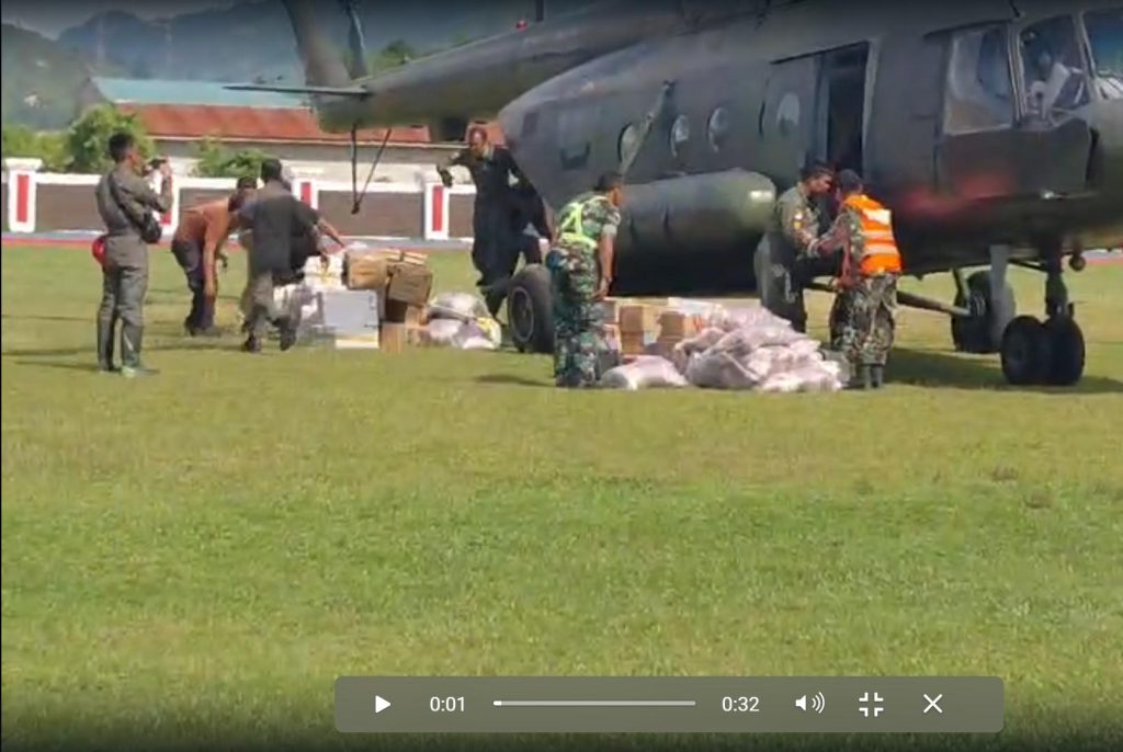 Logistik diturunkan dari Helikopter di GOR Pandan