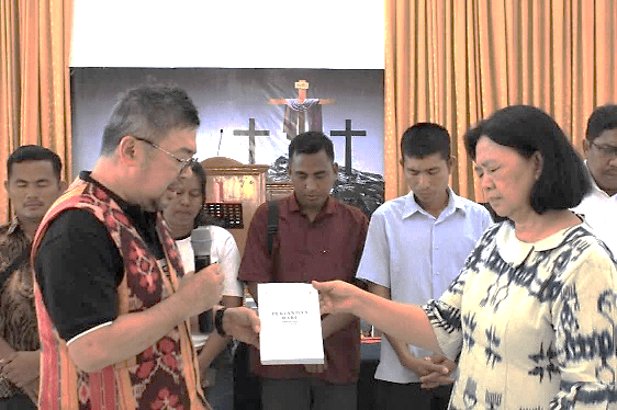 Alkitab tersebut diserahkan oleh Ketua I Sinode GBI, Pdt. Prof. Dr. F. Irwan Widjaja kepada Ketua BPD Sumba GBI, Pdt. Debora Hani, M.Th. dan Bupati Sumba Timur, Umbu L. Pekuwali, ST., MT., disaksikan oleh para gembala GBI dari 10 Perwil BPD Sumba GBI.